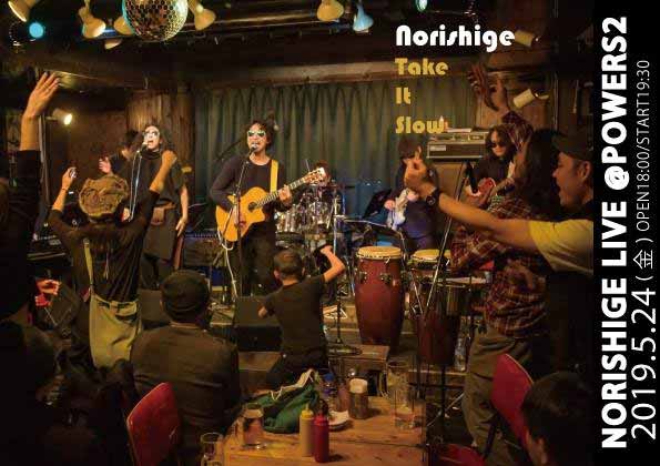 今年1月2ndアルバム「Take it Slow」リリースPARTYも好評にて勢いづく「山⇔都市」往来系シンガーソングライター”Norishige”が再びPOWERS2に登場!強靭なサポートメンバーが集結しリッチな一夜になること間違いなし!お楽しみに☆