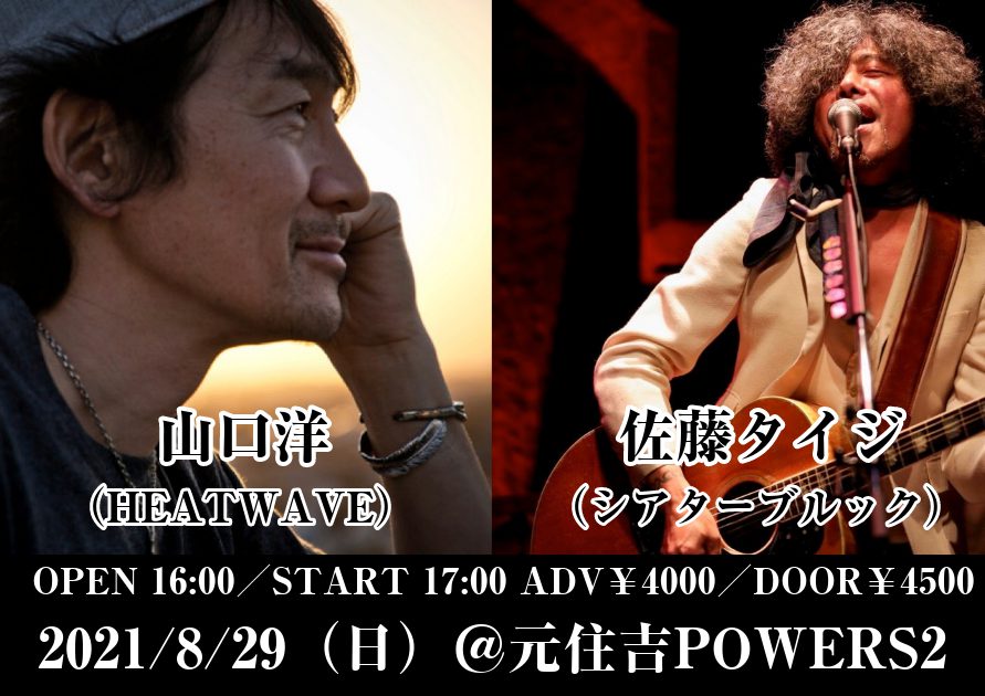シアターブルックの佐藤タイジとHEATWAVEの山口洋による夢の共演が実現!珠玉の名曲の数々をじっくりとたっぷりと聴かせます。お楽しみに☆