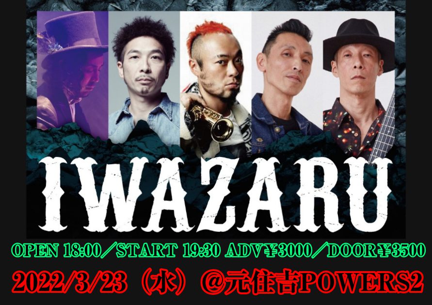 元SOIL&”PIMP” SESSIONSの元晴、ハナレグミやネバヤン等数々のサポートを務めるハタヤテツヤ、元SUPER BUTTER DOGの竹内朋康、そして日本を代表するレゲエバンドHOME GROWNのYukkyとTancoの最強リズムセクションによる「IWAZARU」ワンマンLIVE!見逃すべからズ!!