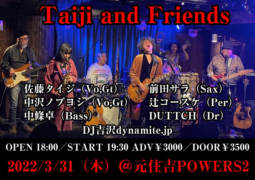 ★Taiji and Friends〜佐藤タイジ+中沢ノブヨシ+中條卓+辻コースケ+DUTTCH+前田サラ+DJ 吉沢dynamite.jp★