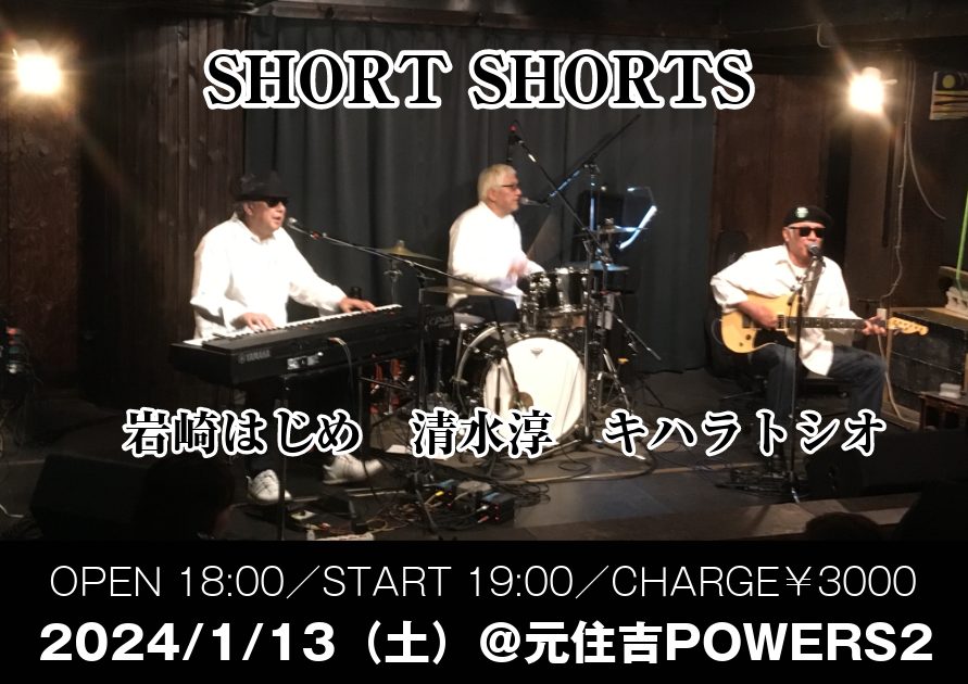 ビートルズやローリング・ストーンズのカバーを中心に60〜70年代の名曲の数々を圧倒的な演奏力と素晴らしいハーモニーで魅了する”SHORT SHORTS”。元矢沢ファミリーのキハラトシオ&岩崎はじめ、SEAMUS等で活躍する清水淳、ミュージシャンズミュージシャンによるスペシャルLIVE!必見です!!