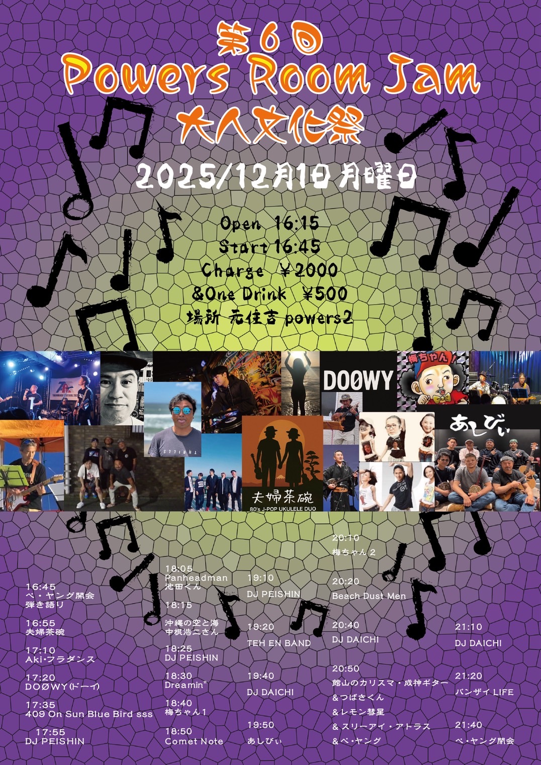 ギターのタッシーが平塚にて経営する下町バル縁の常連客が勢いとノリで組んだ趣味バンドです。