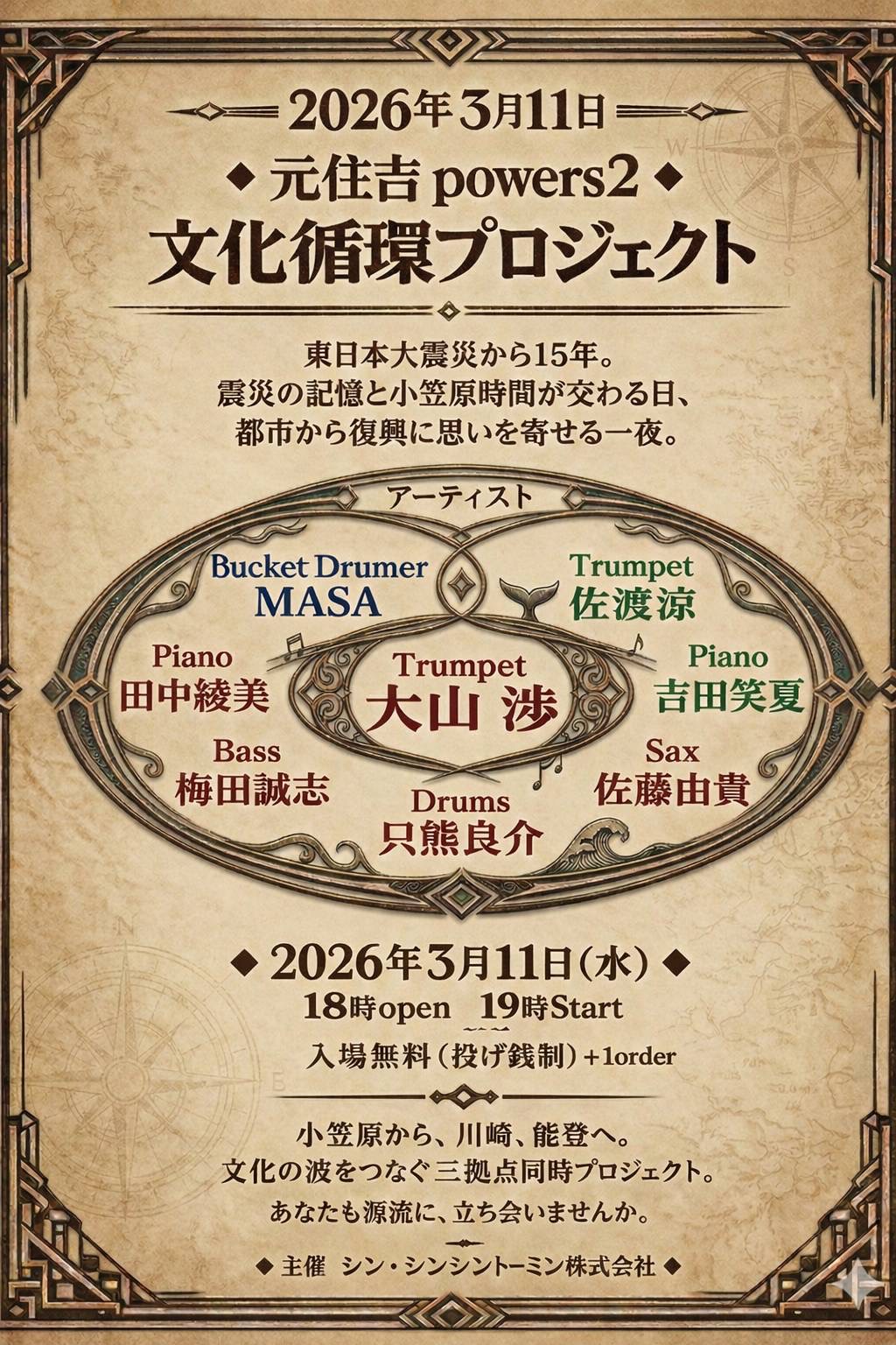 震災の記憶と小笠原時間が交わる日、都市から復興に思いを寄せる一夜。
